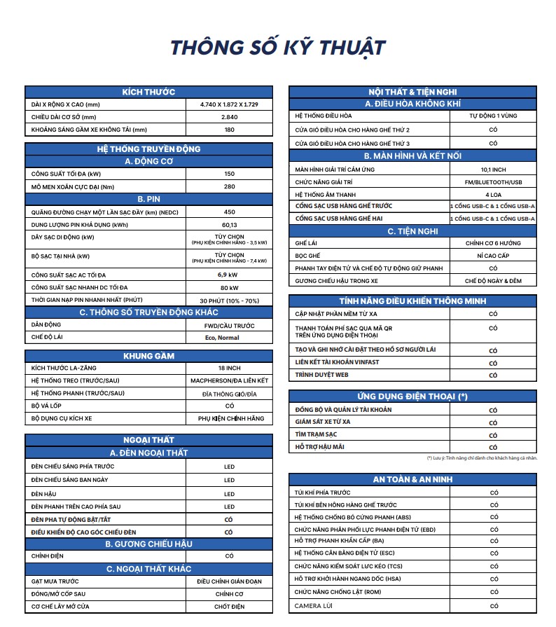 - Quãng đường chạy (NEDC): 450 km/lần sạc đầy