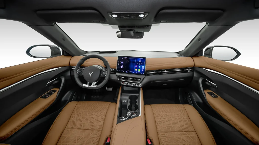 Với chiều dài 4.545mm (chiều dài cơ sở 2.840 mm), rộng 1.890mm, cao 1.635,75mm và khoảng sáng gầm xe 190 mm, VF 7 sở hữu không gian nội thất khoáng đạt, rộng rãi với dàn ghế được bọc da cao cấp.