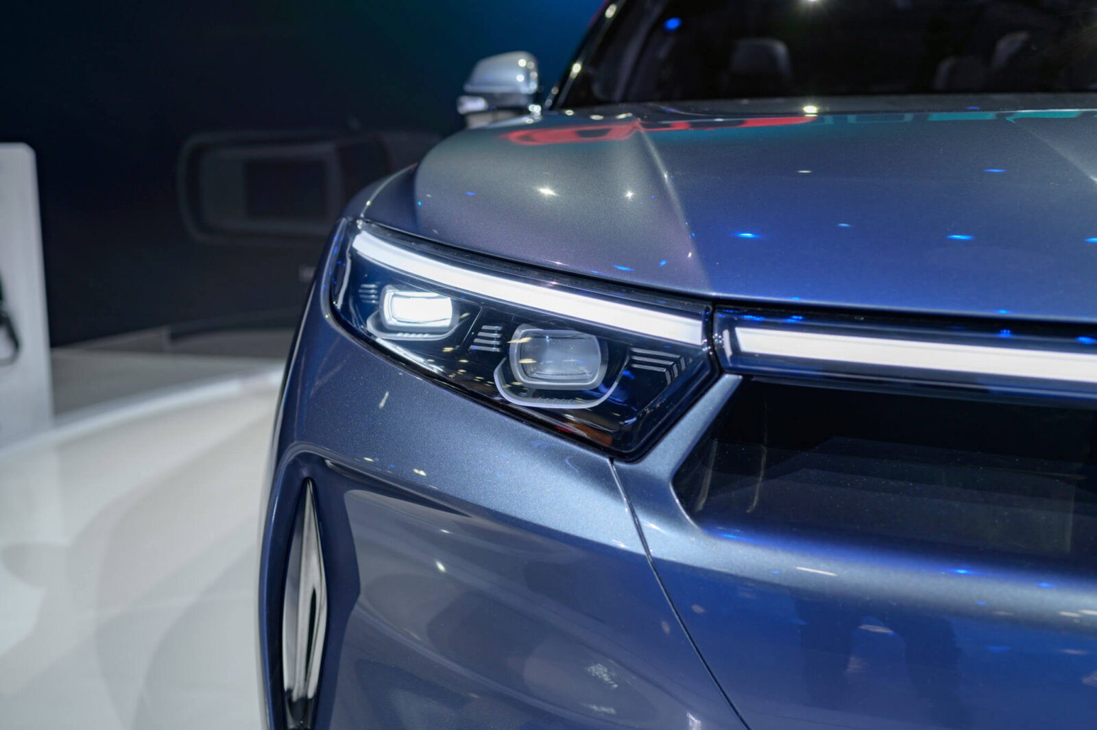 Hệ thống đèn pha sử dụng công nghệ LED matrix hiện đại, cho khả năng chiếu sáng vượt trội, được đặt ngay phía dưới đèn ban ngày. Khe gió phía dưới tích hợp cản trước giúp định hướng luồng gió và làm mát khối pin.